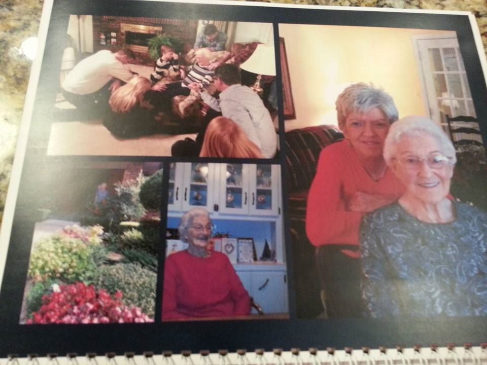 Mom loved looking at each page of photos — some that I pulled from the archives — like the one of all Mom’s grandkids and great grandkids playing her organ, as well as the one of Alexia and Madison in their princess dresses and Payton laughing hysterically at them. Mom keeps the calendar in a prominent spot in her kitchen.